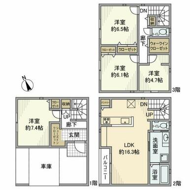 4LDK(LDK16.3、洋4.7、洋6.1、洋6.5、洋7.4) |